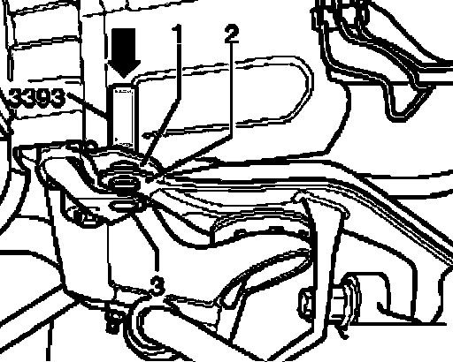 - Before loosening the sub-frame ensure holes -1- and -2- align on both sides of vehicle using special tool 3393.