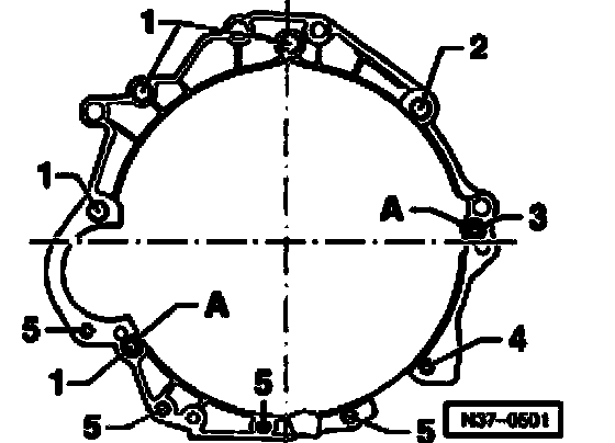 - Remove bolt -A- after transmission is bolted to engine.