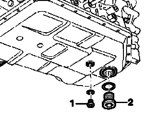 ^ Remove ATF drain plug - 1 - and allow ATF to drain.