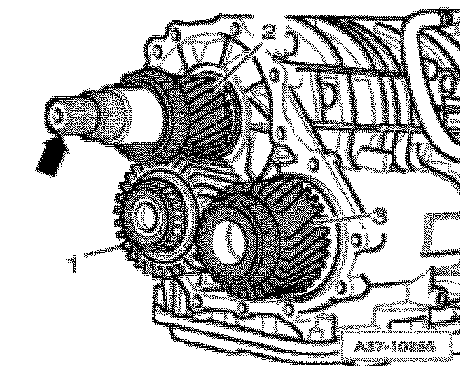 ^ Remove pinion gear together with intermediate pinion, pull drive pinion - 2 - slightly toward rear while doing so.