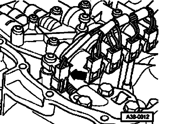 ^ Disconnect electrical harness connector - arrow - from Transmission Vehicle Speed Sensor (VSS) G38 or Transmission Output Speed (RPM) Sensor G195.