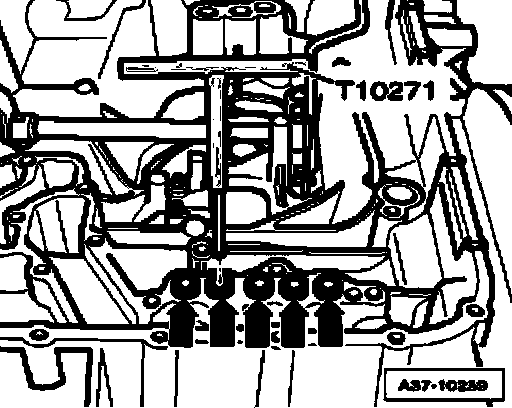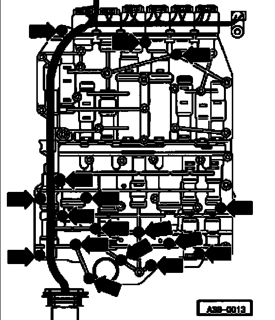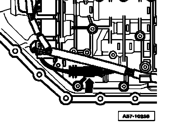 ^ Remove bolts of ATF oil pan - arrow - in diagonal sequence.