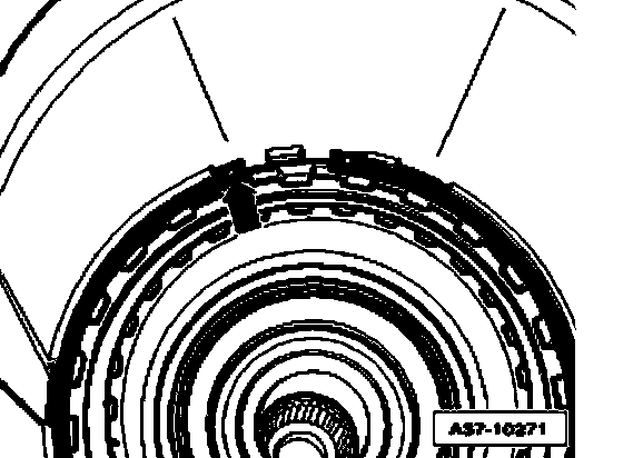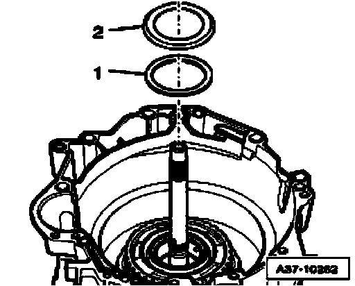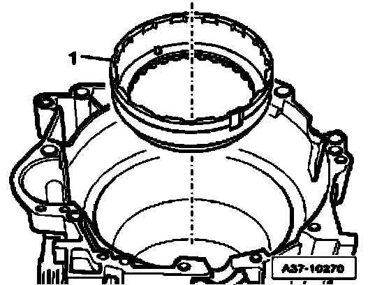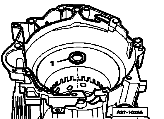^ Make sure that circlip is seated evenly all around in groove of transmission housing, if necessary, drive circlip into groove all around using drift.