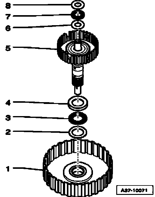^ Insert thrust washer - 1 - into ring gear.
