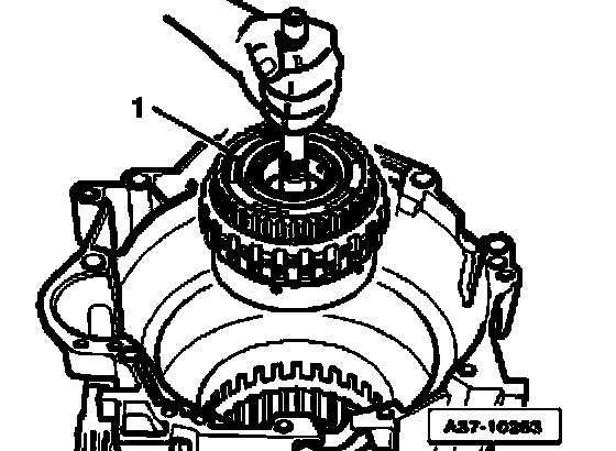 ^ Insert tower "II" - 1 - into transmission housing by hand using turning motions.