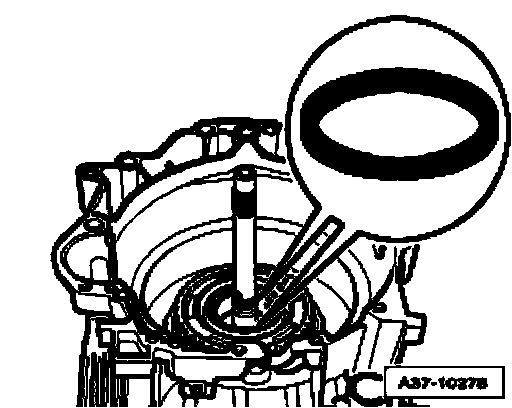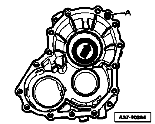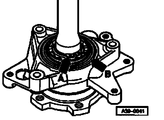 ^ Check whether centering sleeves - A - are inserted in intermediate flange.