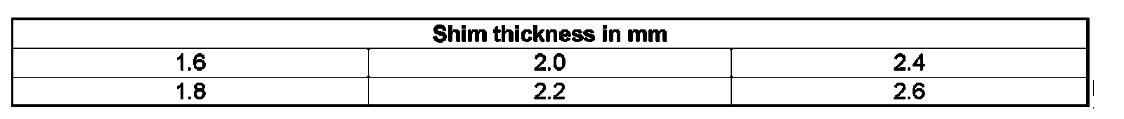 ^ Adjustment shim may not be installed.