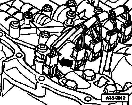 ^ Connect electrical harness connector - arrow - to Transmission Vehicle Speed Sensor (VSS) G38 or Transmission Output Speed (RPM) Sensor G195.