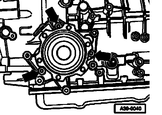 ^ Bring ATF pump to final installation position by alternately tightening two opposing attachment bolts each.
