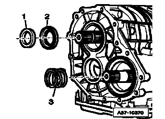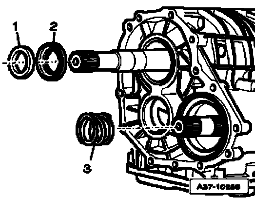 ^ Slide sealing sleeves - 3 - until stop and coil springs - 2 - into bores of transmission housing.