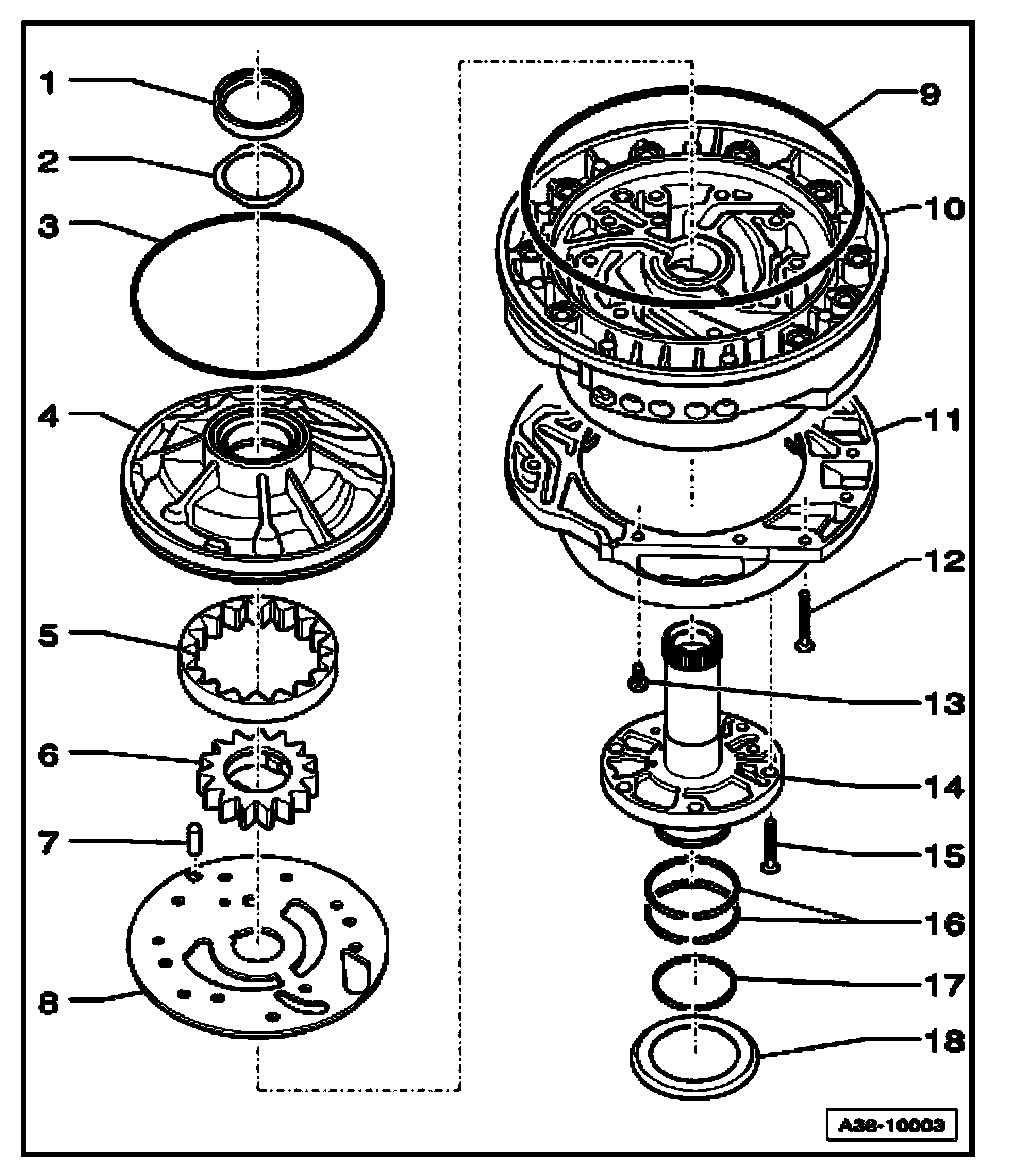^ Check whether coupling plates - arrows - on ATF pump wheel show pressure marks or are broken off, replace ATF pump if necessary.
