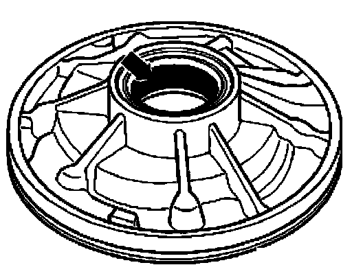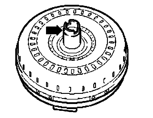 ^ Check torque converter hub - arrow - for wear.