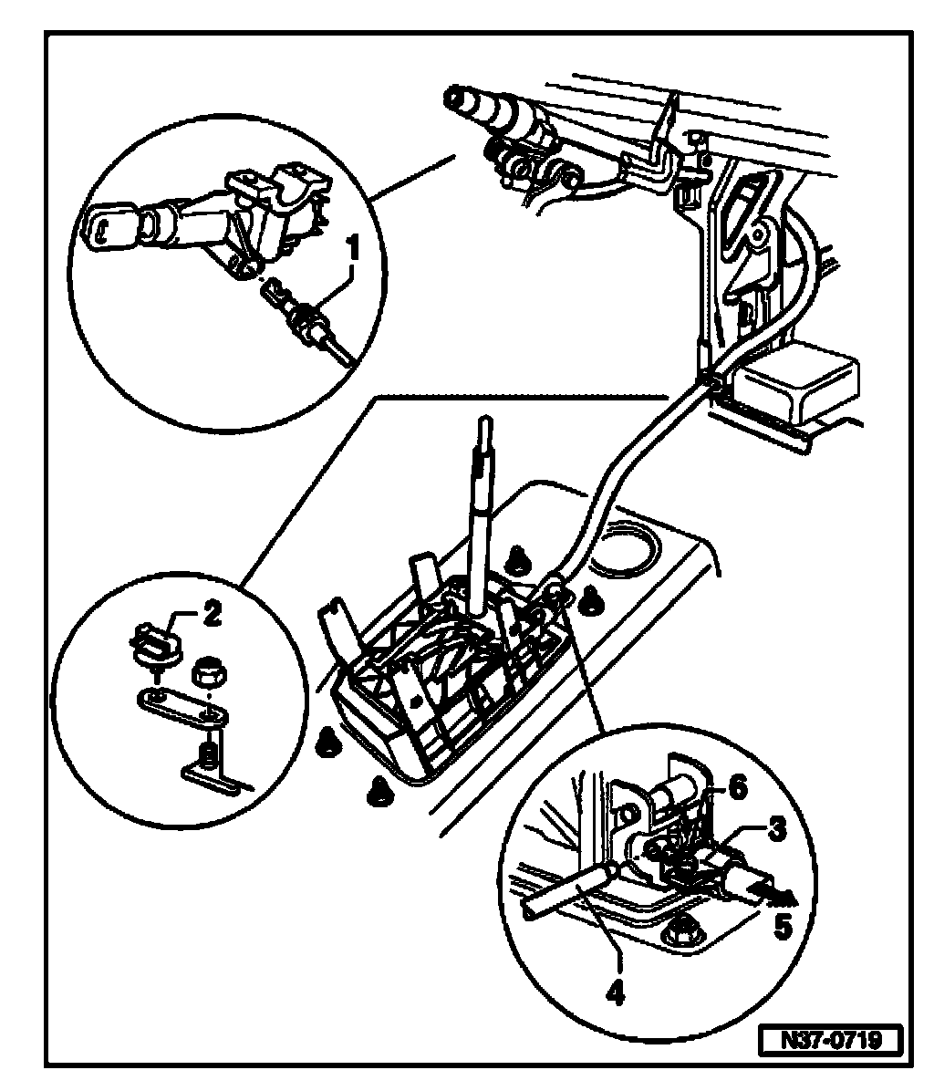 ^ Check ignition key removal lock after every adjustment of the locking cable.