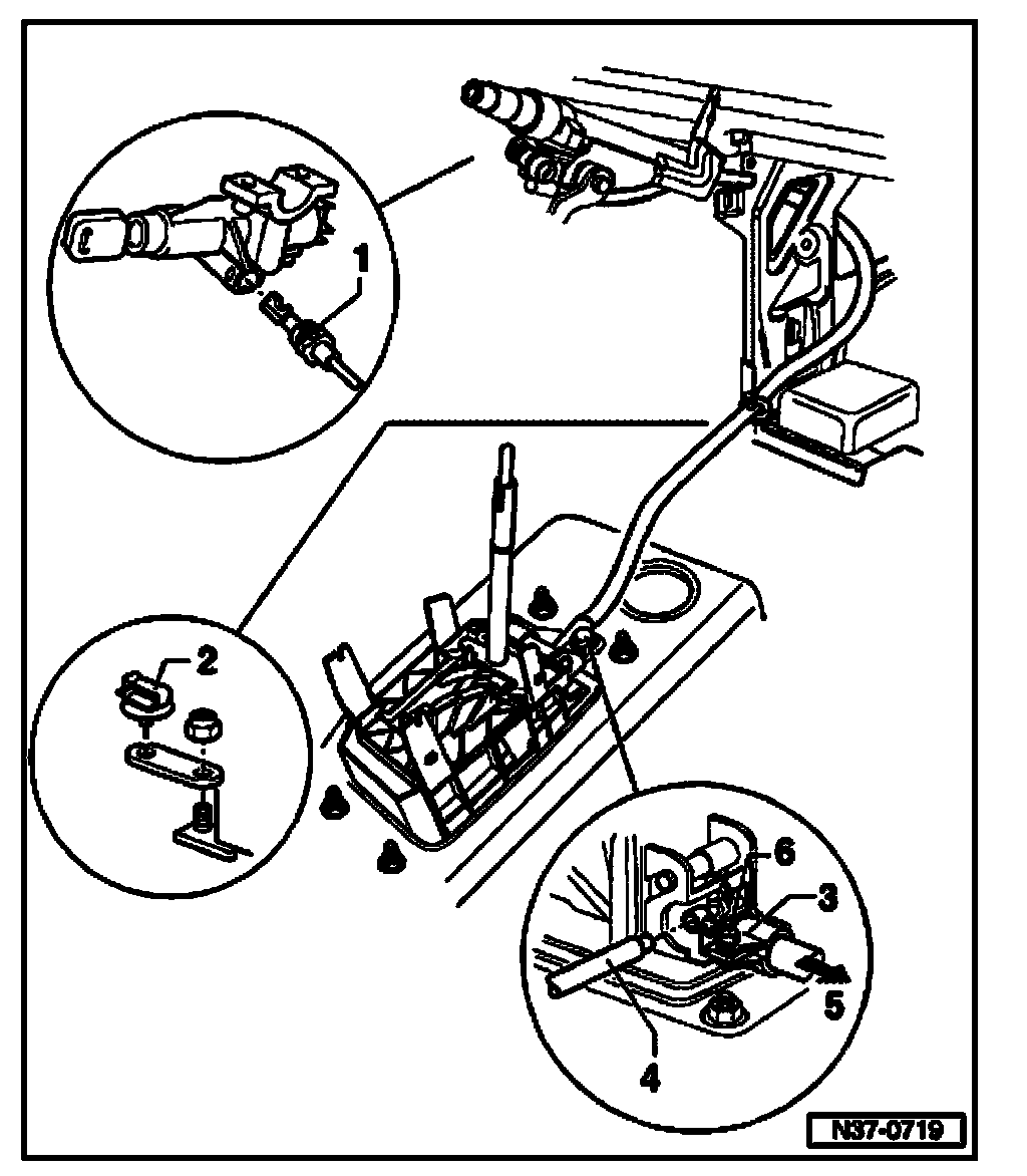 - Check ignition key withdrawal lock after each adjustment of locking cable.