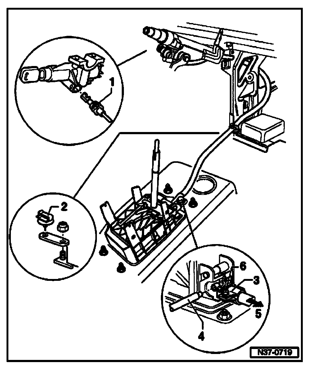 Locking cable, removing and installing, 01V, 5 SPD. A/T (AWD)