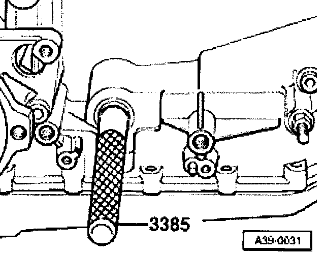 - Push transmission selector lever onto selector shaft and knock in roll pin.