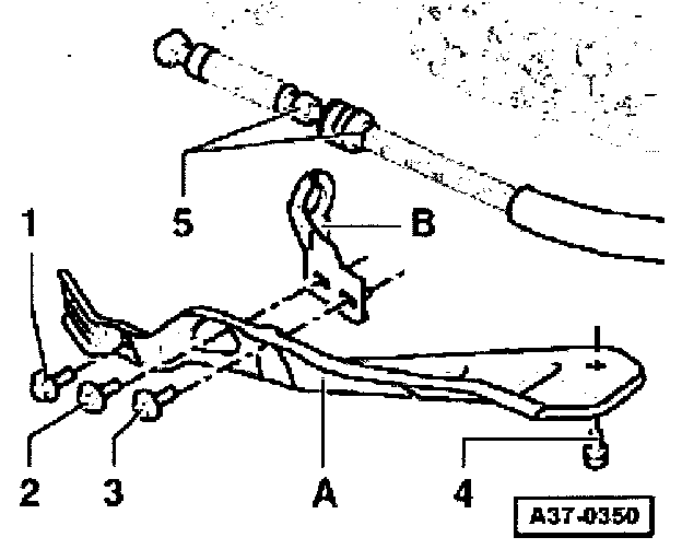 - Pull down locking plate -A- (for securing selector lever cable to mounting bracket) and remove.