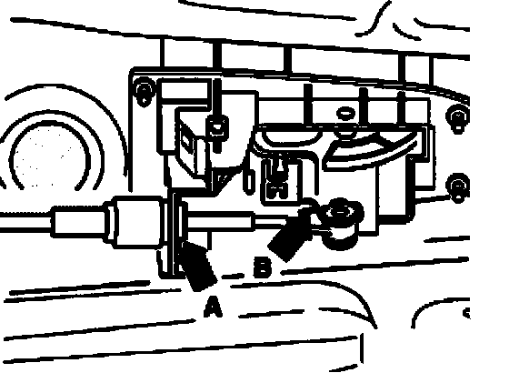 ^ Press ends of locking clip - B - together and slide onto the end of the selector lever cable.