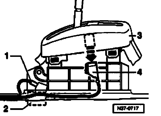- Pull out connector -4- for gearshift positions and Tiptronic in direction of arrow.