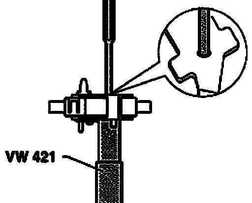 - Carefully drive in fulcrum pin -26- for locking pawl -24, Support mounting bracket -22- on tube VW 423 when doing this.