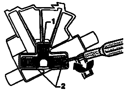 - Carefully lever out springs -1- and -2- and press piece (Qty. 3) for Tiptronic springs with a screwdriver -arrow-.