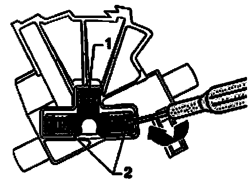 - Insert a short spring -1- and two long springs -2- with press pieces (Qty. 3) into the gate by hand.