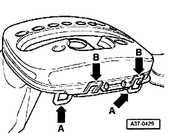 The four retaining tabs -arrows B- must not be removed from the printed circuit. The printed circuit will otherwise be damaged.