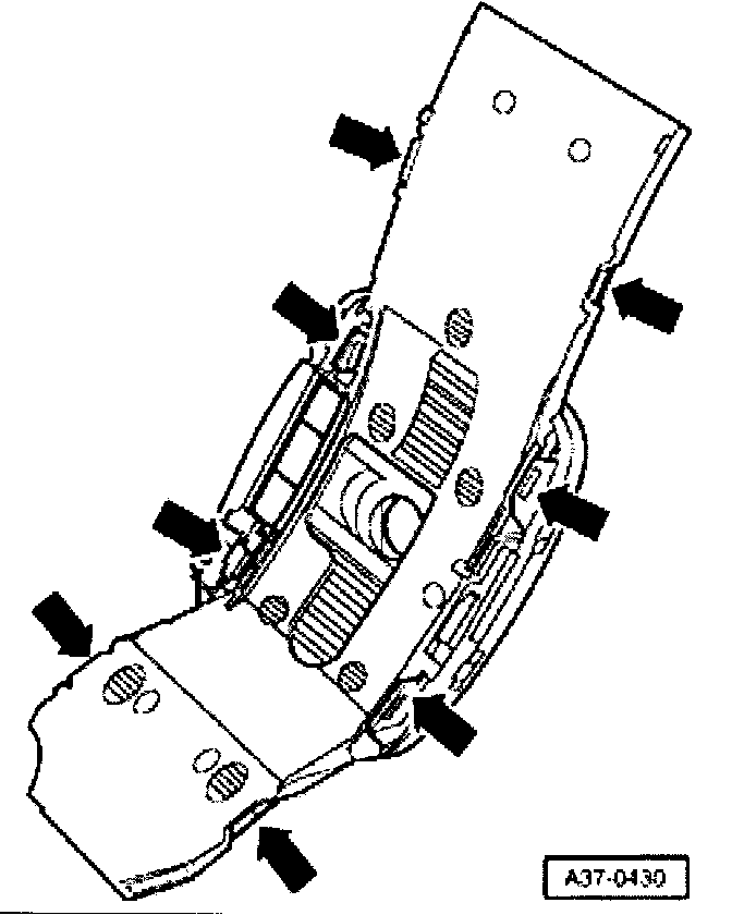 - Carefully lever off retaining tabs -arrows-.
