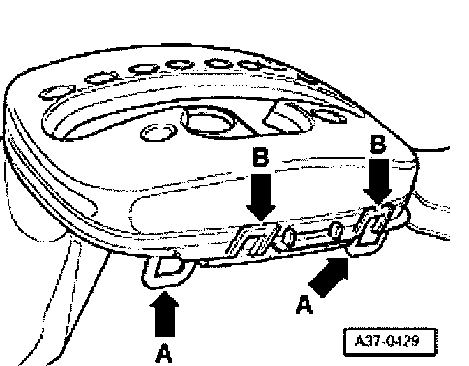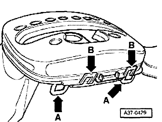- If retaining tabs are damaged -arrows A or B-, replace complete cover.