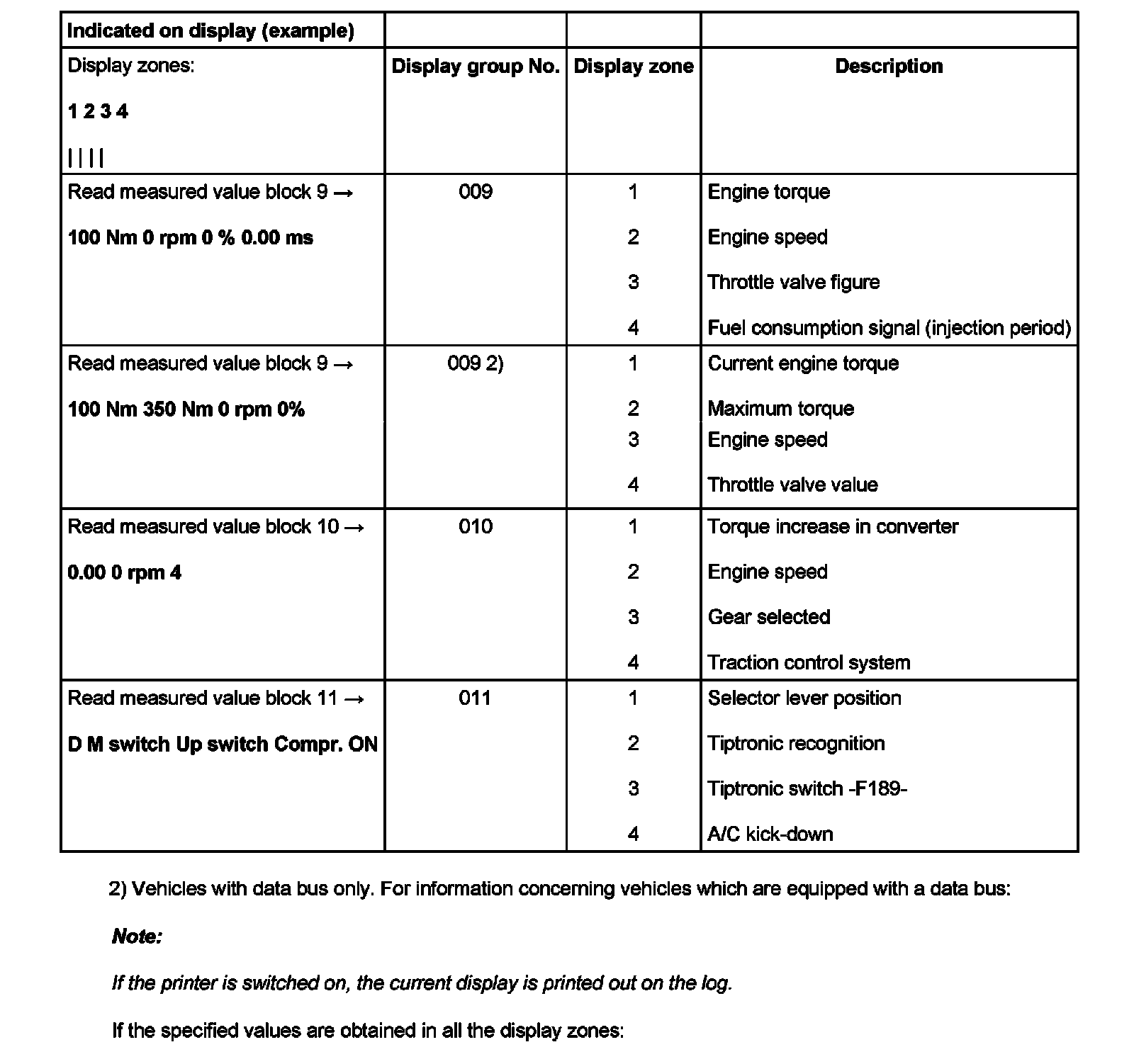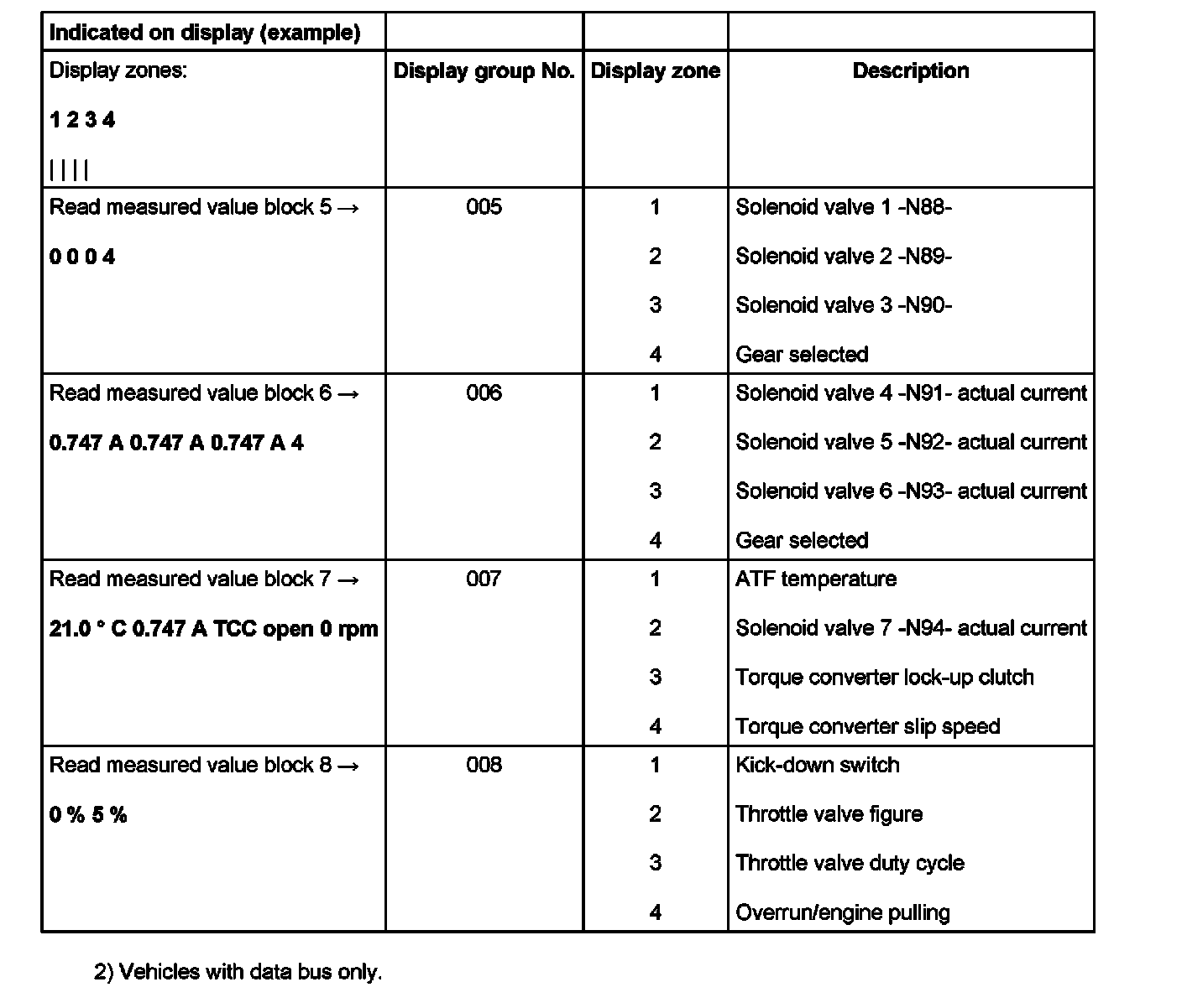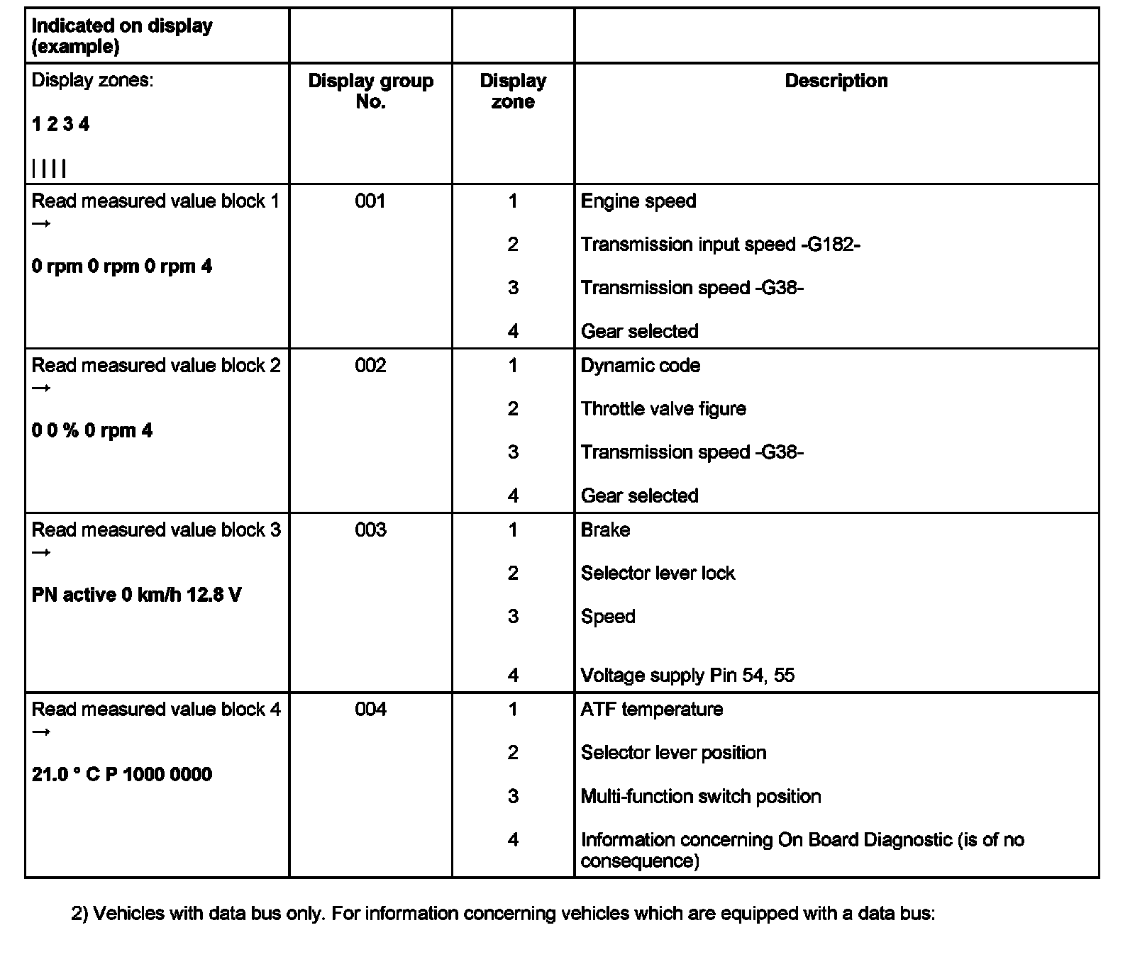 List of selectable display group numbers, 01V, 5 SPD. A/T (OBD)