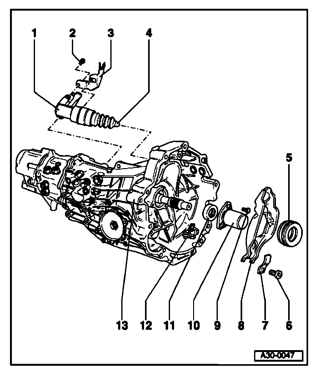 - Remove clutch release lever -4- together with release bearing -3- and intermediate piece -5-.