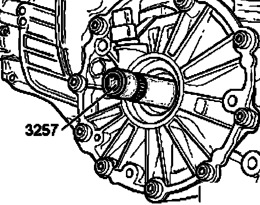 ^ The differential can be installed and removed without removing shift mechanism, drive flange and drive pinion. Removal of the components mentioned above is necessary if the differential must be adjusted.