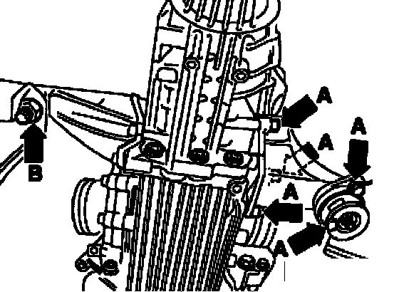 ^ Bolt left transmission support to bonded rubber bushing - arrow B - (shown here in conjunction with 6-cylinder engine).