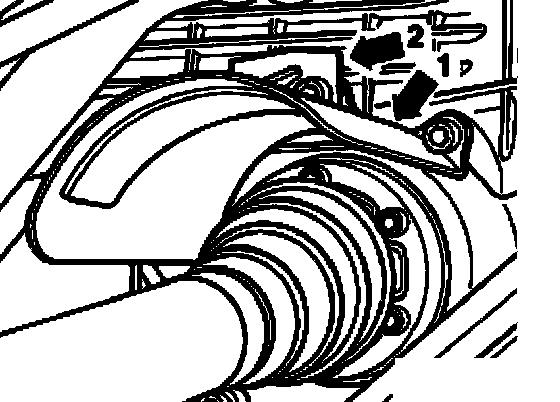^ Install cover plates over right drive axle - arrow 1 - and - arrow 2 -.