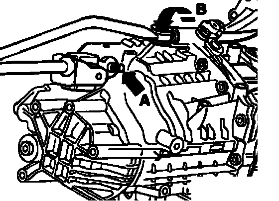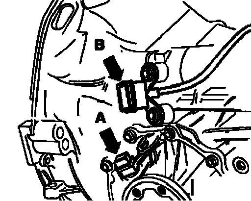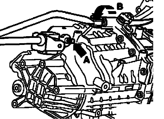 ^ Secure pivot rod to transmission - arrow B -.