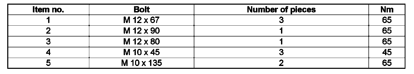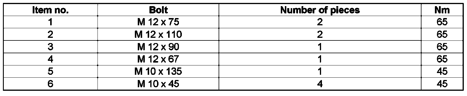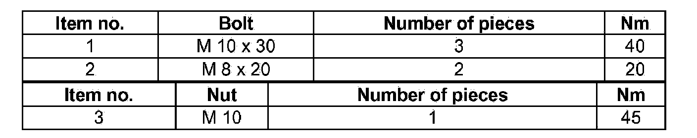 Tightening torques