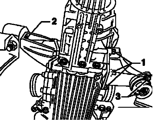 ^ When inserting transmission, make sure that flanges for drive axles are located in transmission flange shafts.