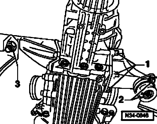 ^ When inserting, push up engine slightly at torque supports (in direction of - arrow -) with a second technician if necessary.