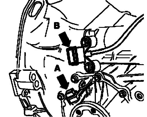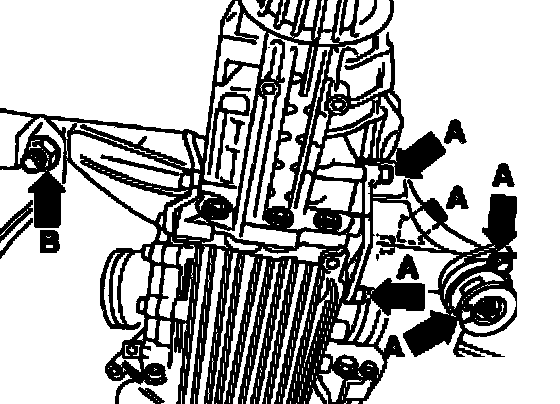 ^ Left transmission support must be removed from bonded rubber bushing - arrow B -.