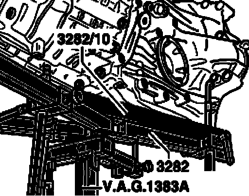 ^ Assemble transmission jack with transmission support 3282, adjustment plate 3282/10 for "012"/01A" transmission and support elements as follows: