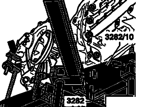 ^ Place adjustment plate 3282/10 on transmission support 3282 (adjustment plate fits in only one position).