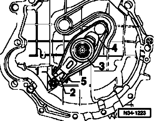 - Remove clutch release lever -4- with release bearing -3- and intermediate piece -5-.