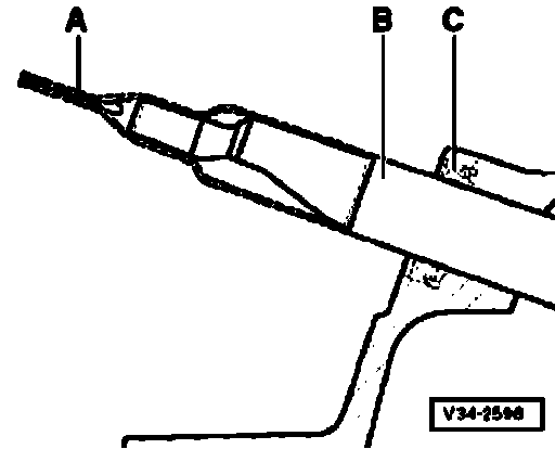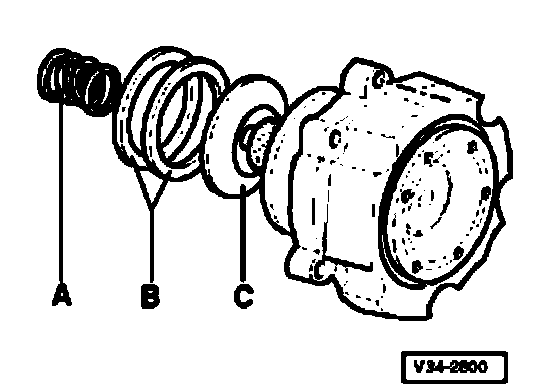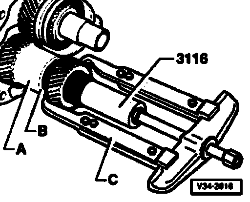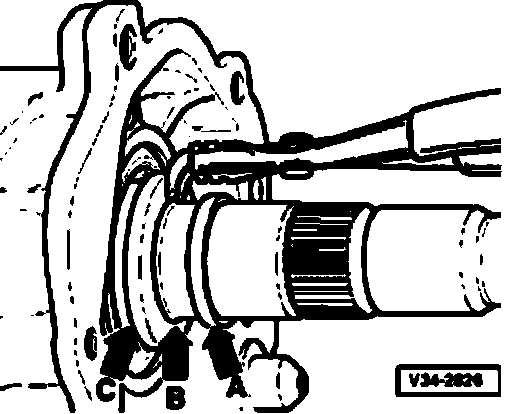- Remove corrugated spring -B- and needle roller bearing -C-.