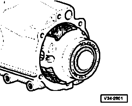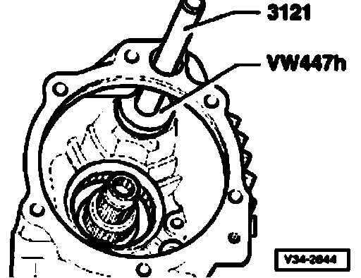 - Carefully pry used input shaft oil seal out of transmission housing using VW 681.