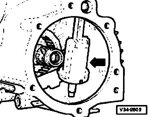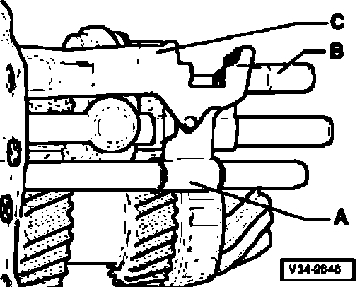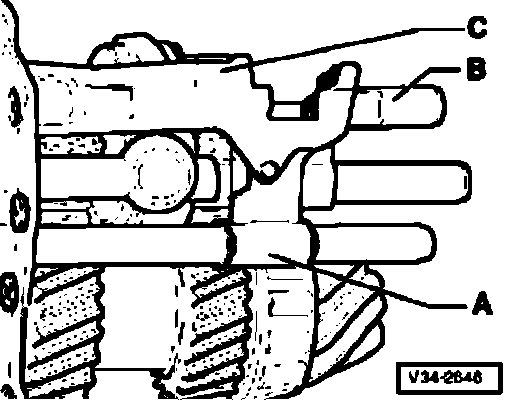 - Pull selector rod on yoke together with selector fork for 5th and 6th gear and locking collar as far as possible from gear carrier (stop will be felt).