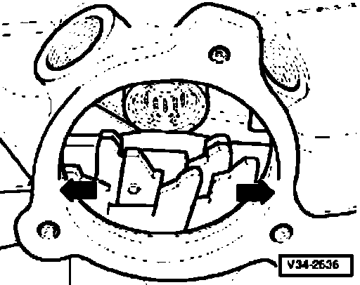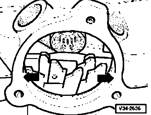 - Turn oil diverter until positioning segment lies in recess in end cover (arrow).