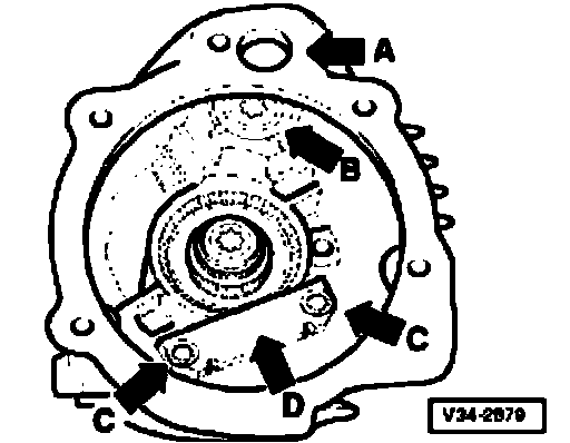 - Observe installed position of dish spring -C- when removing bearing plate.