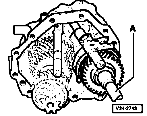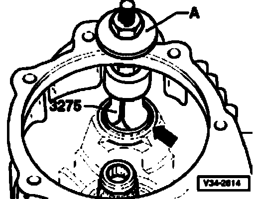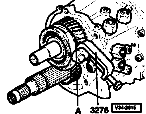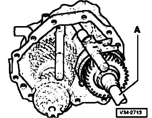 - Push on thrust washer (arrow -A-) for needle roller bearing for 6th gear sliding wheel.