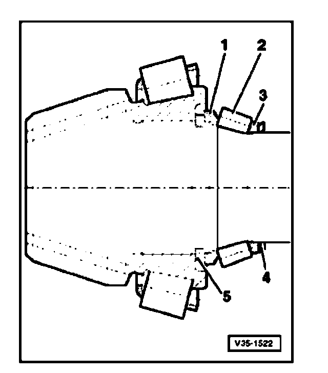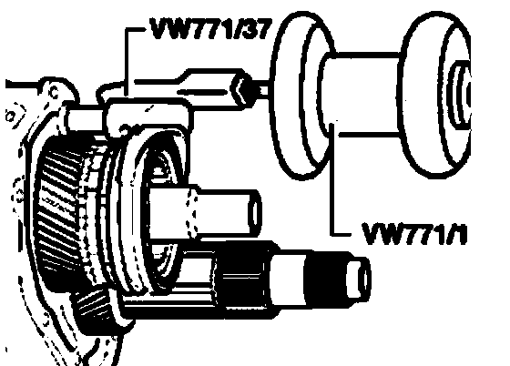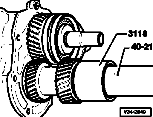 - Drive on inner race of needle roller bearing for 5th gear sliding wheel so that there is no axial play.