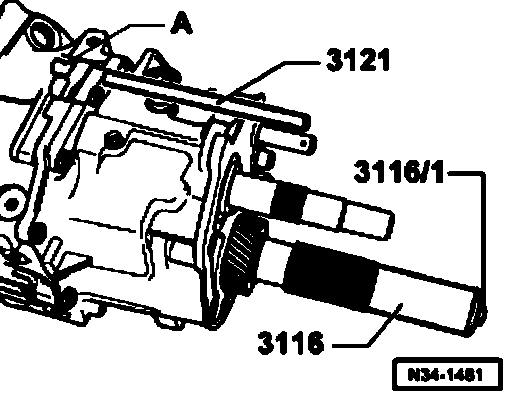 - Pull thrust washer (arrow -A-) for 6th gear needle roller bearing off shaft.